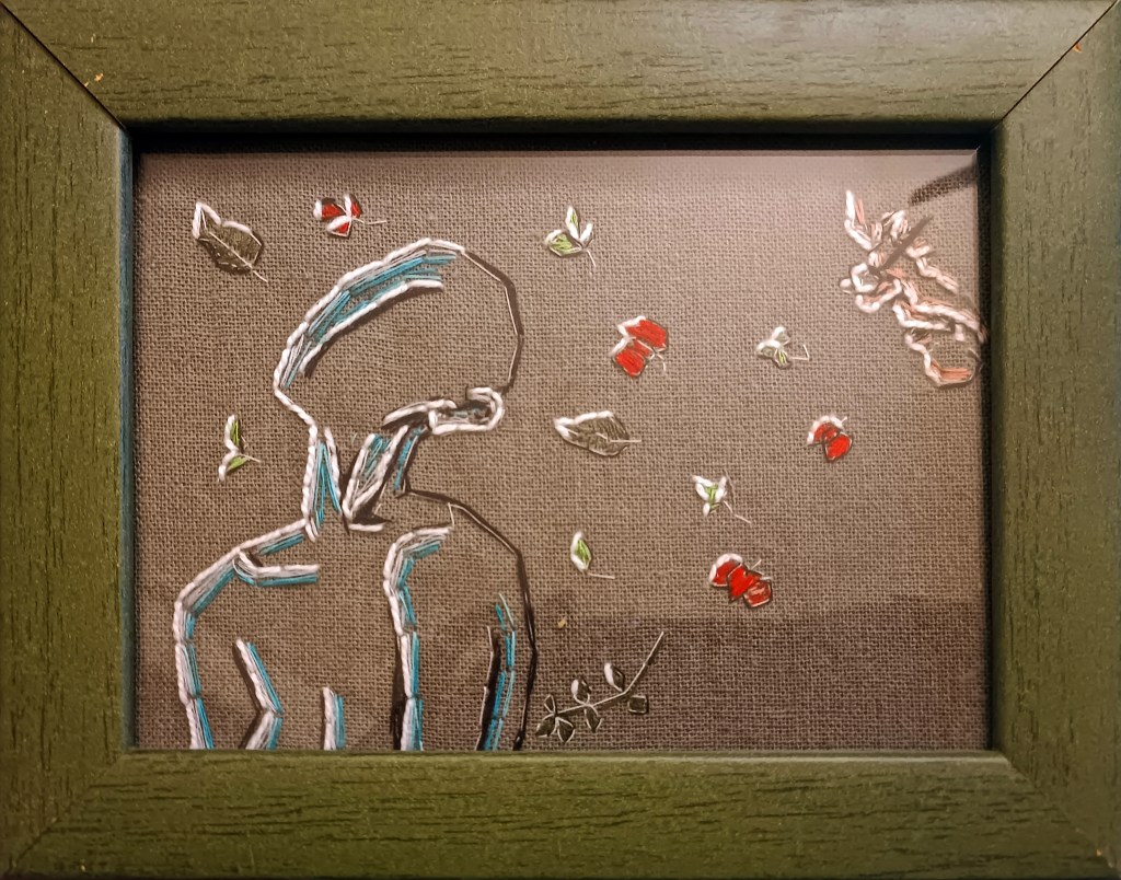Los hilos que nos unen. 20 x 15 cm, hilo sobre tela. (Colección privada)